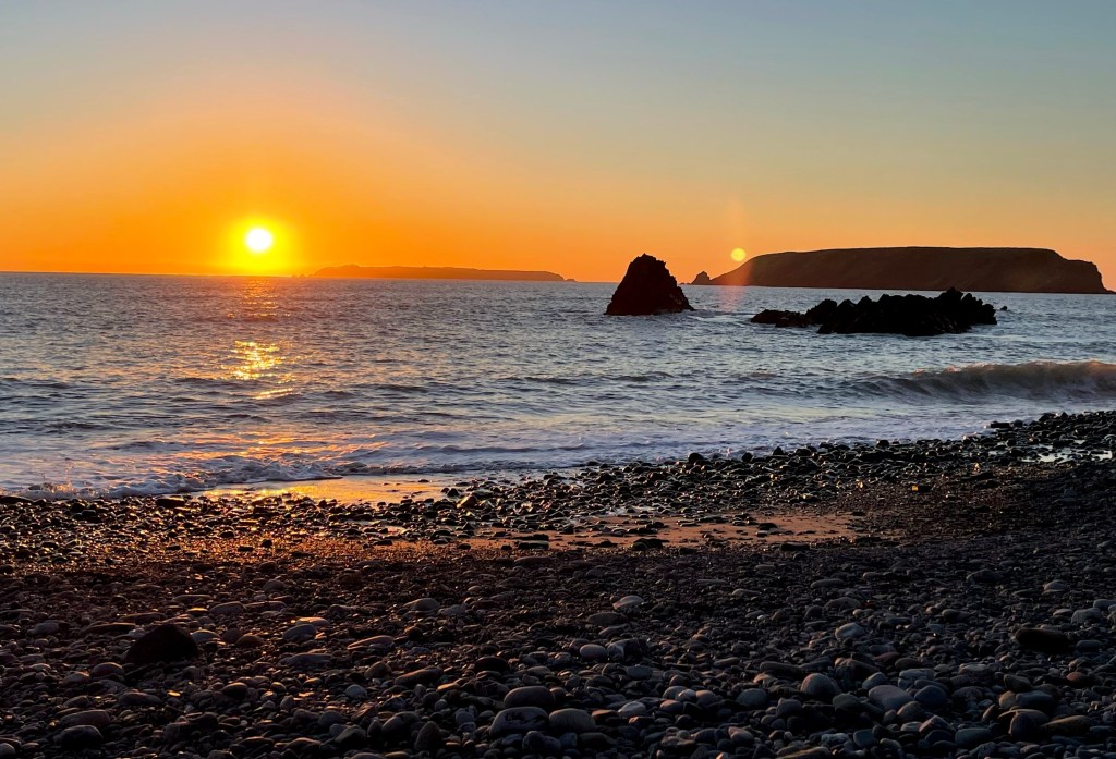 I couldn’t help being stopped in my tracks by these beautiful bands of colour in the sky below the rising moon in the east, as the sun set in the west on a cold winters afternoon